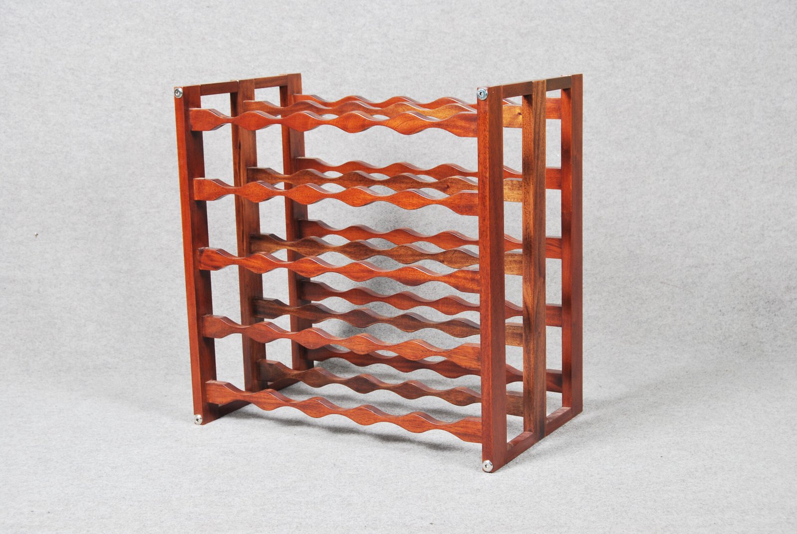 This wooden rack, featuring a sturdy wave-like design, safely accommodates numerous bottles in a neat arrangement, making it a must-have for wine collectors. Its robust stackable design allows you to easily expand the storage capacity to meet your growing collection needs!”