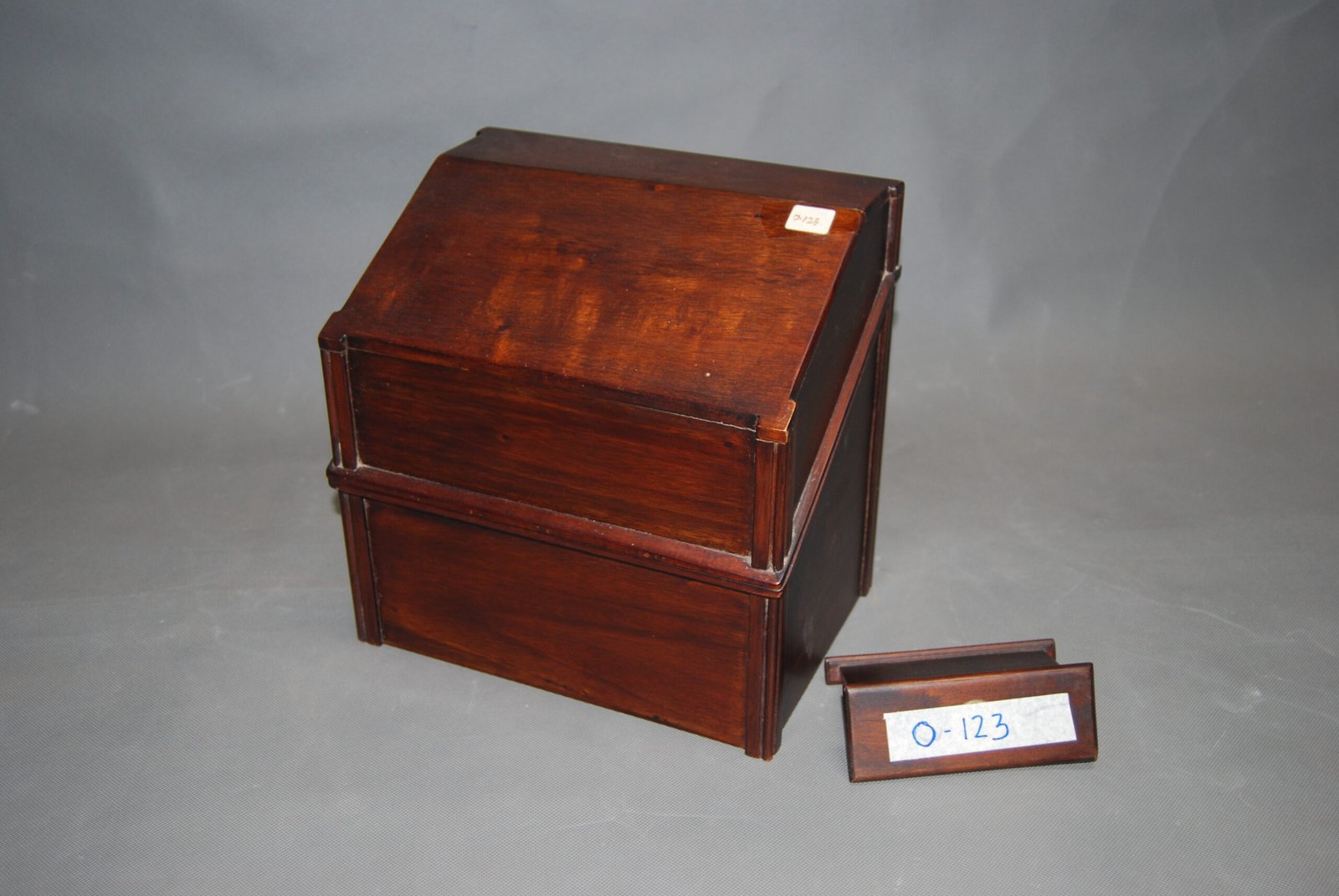 A Stylish Stationery Keeper: A versatile wooden storage box featuring a classic, hinged slant-top design. Ideal for storing jewelry, writing instruments, or other small valuables with a traditional touch.